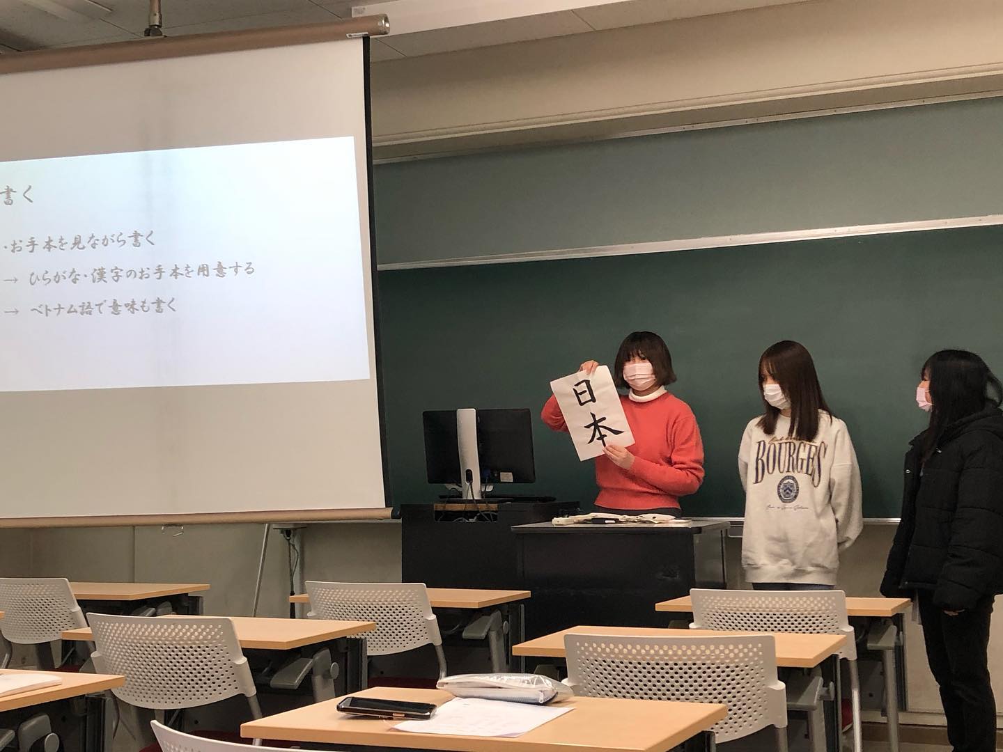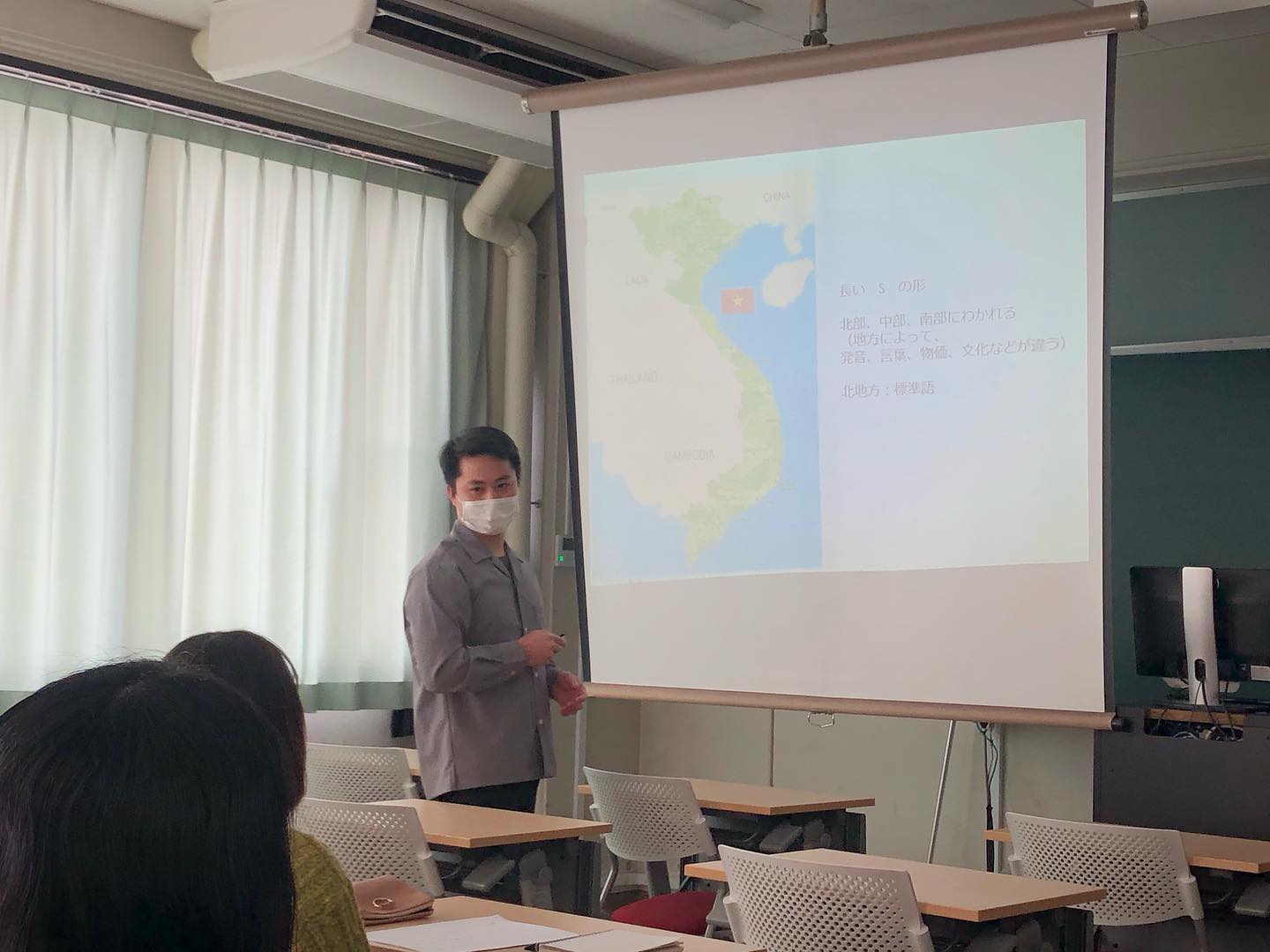 アジアフィールド研修(ベトナム)事前オリエンテーションの様子 2023年02月07日 2月下旬出発のアジアフィールド研修(ベトナム)の事前オリエンテーションの様子です。 この日は正規留学生でベトナム出身の4年生に簡単ベトナム講座を開いてもらいました ベトナムのお札も紹介。現在100円はベトナム通貨で約18,000ドン。計算に時間がかかりそう‥ちなみにホンモノのお札は破れないとのこと。確かに!力を入れても破れなかった オリエンテーション後半は、現地でプレゼンする内容をチームごとにリハしてもらいました 出発までにブラッシュアップしていきましょう‼︎