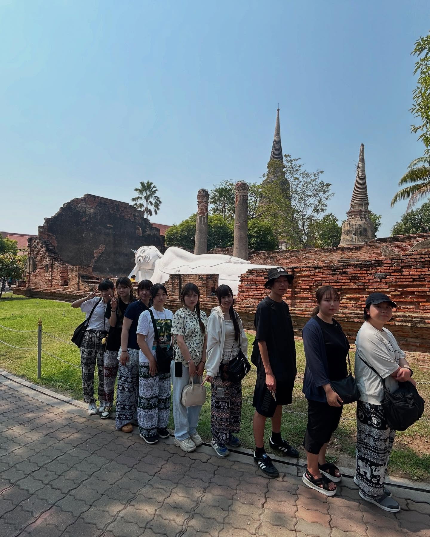 続いて、タイの古都アユタヤを訪問しました。世界遺産アユタヤ遺跡群では、かつての繁栄とビルマ軍侵攻の歴史を学びました。現地には日本人町の跡地も残されており、400年にわたる日本とタイのつながりも再認識する機会となりました。象に乗っての遺跡巡りは、学生たちにとって忘れられない体験となったようです。