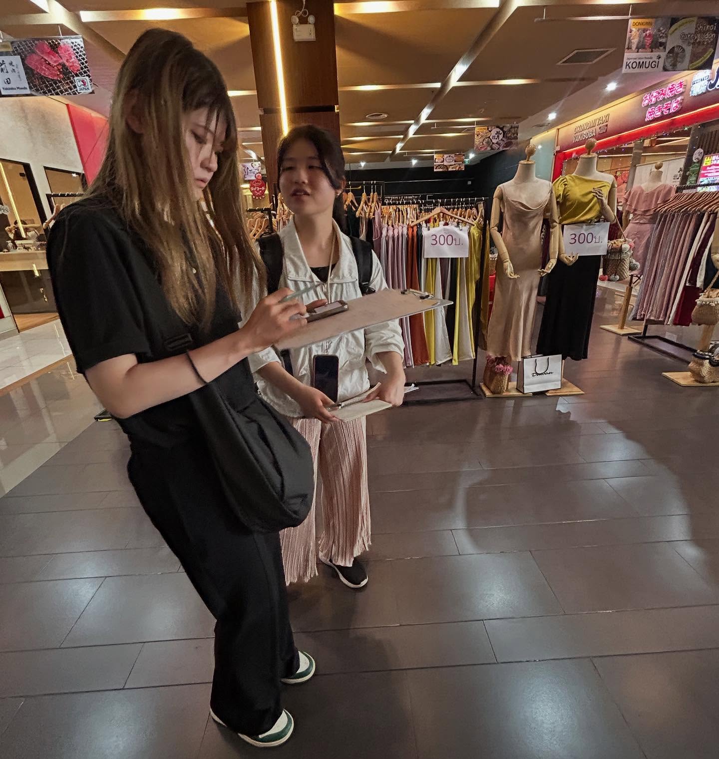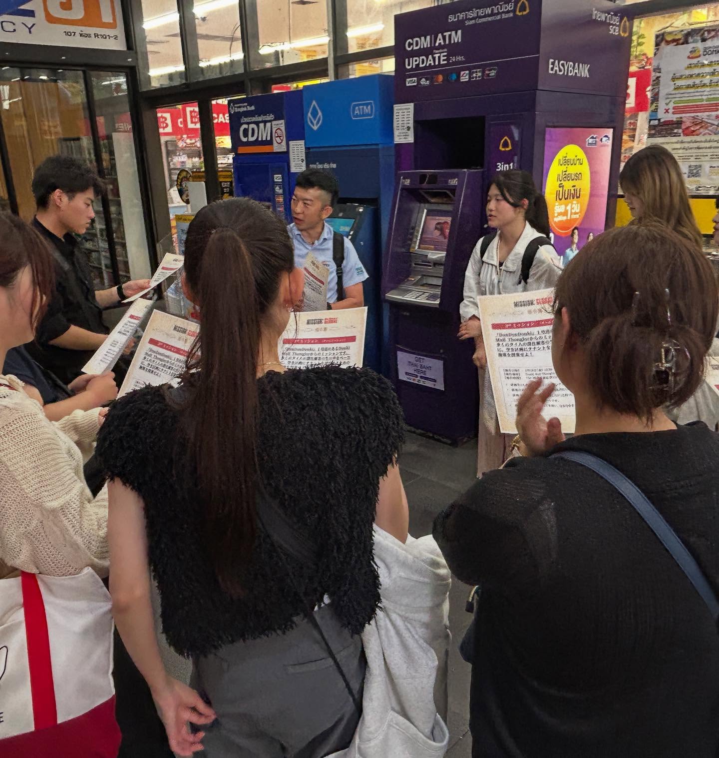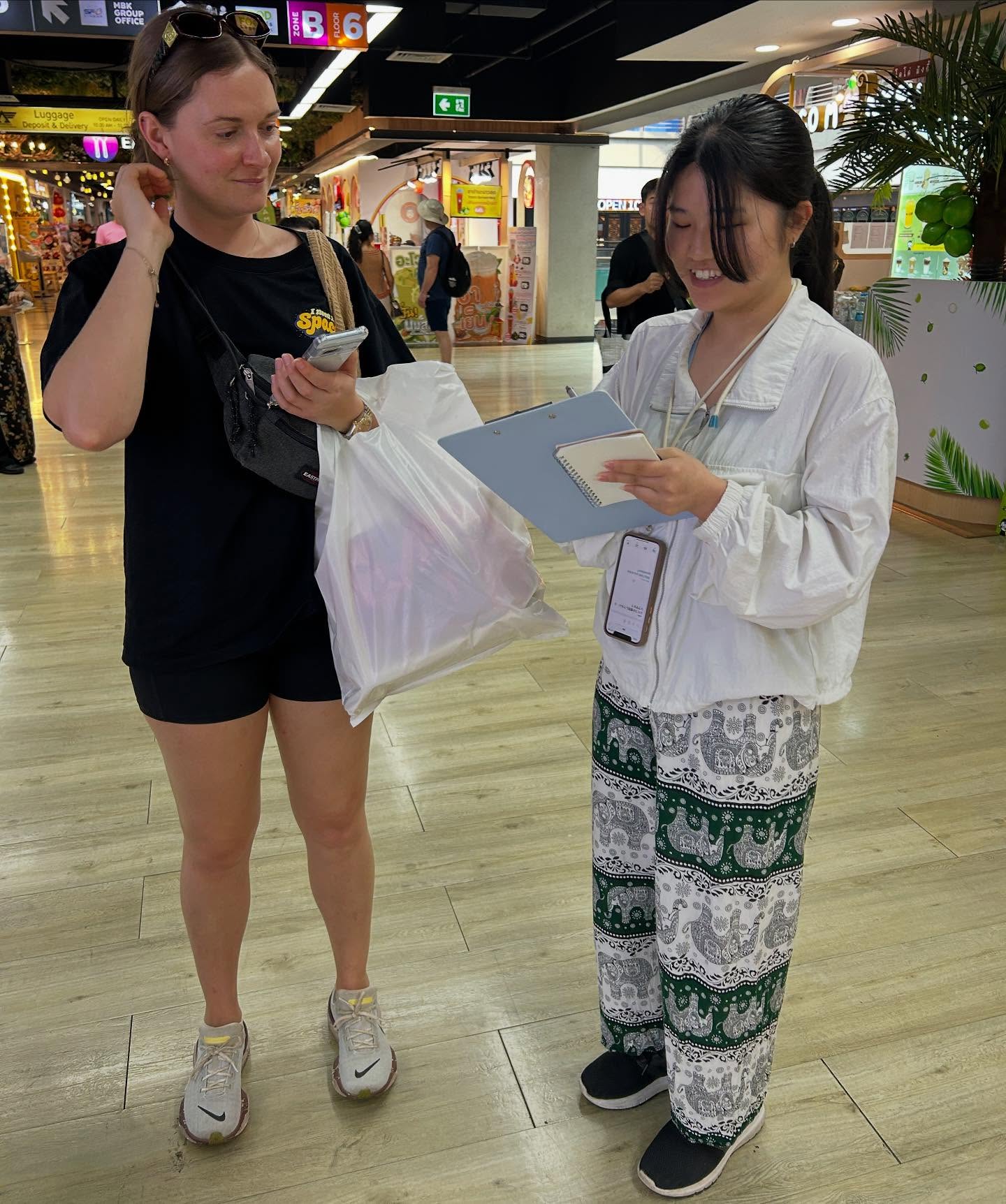 群馬発のグローバル企業・コシダカホールディングス様が運営する「まねきねこ」からもミッションをいただきました。観光客へのインタビューやアンケート調査を通して、市場ニーズの調査に挑戦。タイ語の環境に慣れた学生たちにとって、英語での調査は驚くほどスムーズだったようです。